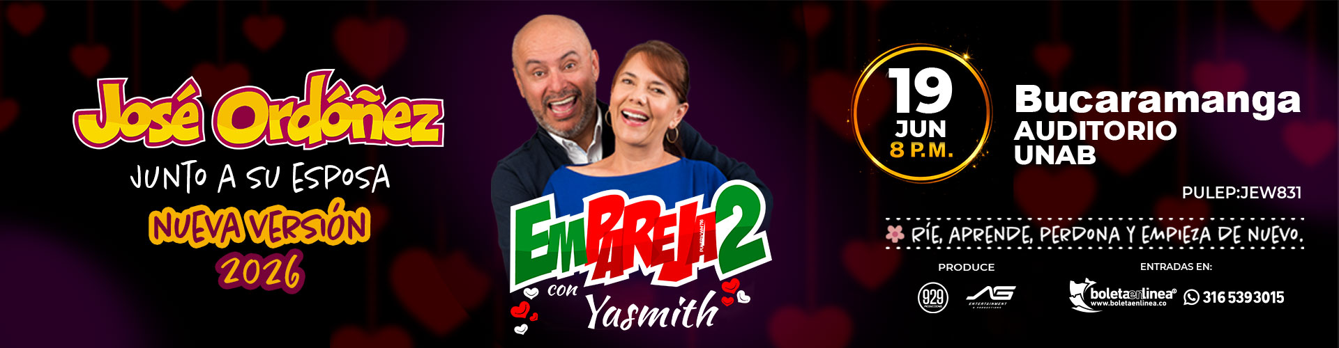 “Emparejados” abre su función para este 19 de junio. un espectáculo de comedia, es una experiencia que une a las parejas a través de la risa. En este 2026 Descubre por qué reír juntos es una de las mejores formas de fortalecer los lazos, mientras José Ordóñez te sumerge en un mundo de gracia matrimonial.